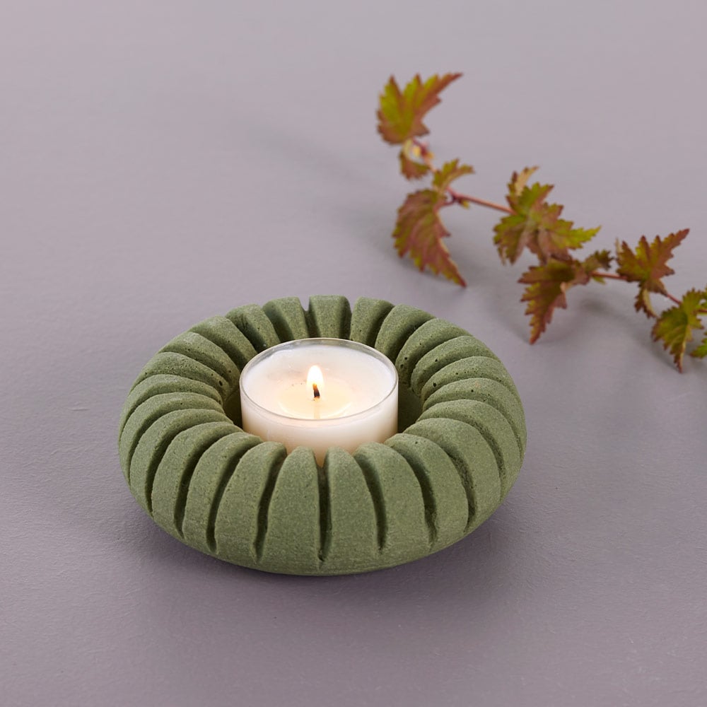En rustik og stilig lysestake til telys, laget i Jesmonite, et bærekraftig materiale.